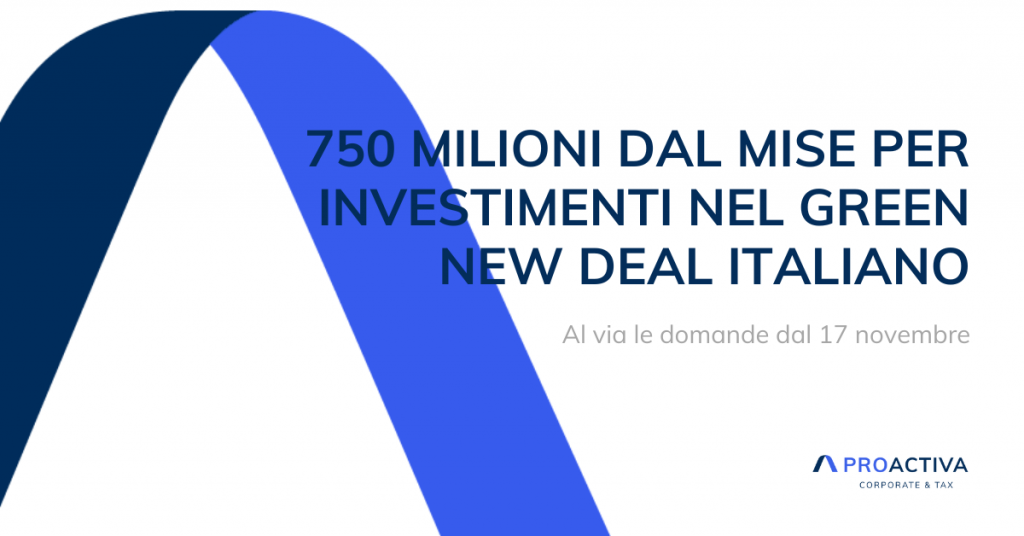 Il Ministero dello Sviluppo Economico ha annunciato l’avvio di un programma di investimenti finalizzati alla realizzazione di progetti relativi al Green new deal italiano. Con questo intervento sono stanziati 750 milioni in favore di imprese industriali, agroindustriali, artigiane o che erogano servizi all’industria, che vogliano avviare progetti di miglioramento dei propri processi produttivi, prodotti o […]