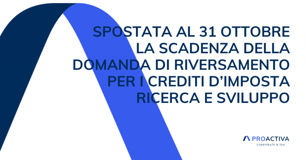 Spostata al 31 ottobre la scadenza della domanda di riversamento per i crediti d’imposta ricerca e sviluppo