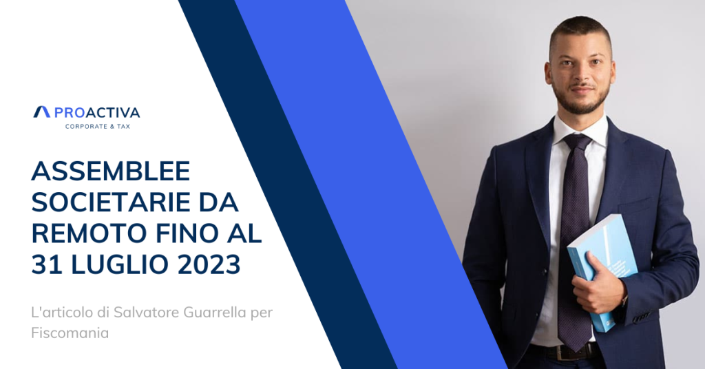 Salvatore Guarrella, ha scritto un articolo per Fiscomania in cui spiega come il Parlamento, con il Decreto Milleproroghe 2023 (DL 198/2022) ha approvato la norma per la quale le assemblee societarie potranno continuare ad usufruire fino al 31 luglio 2023 delle agevolazioni previste dal Decreto Cura Italia, tra cui si segnala la facoltà di svolgere […]